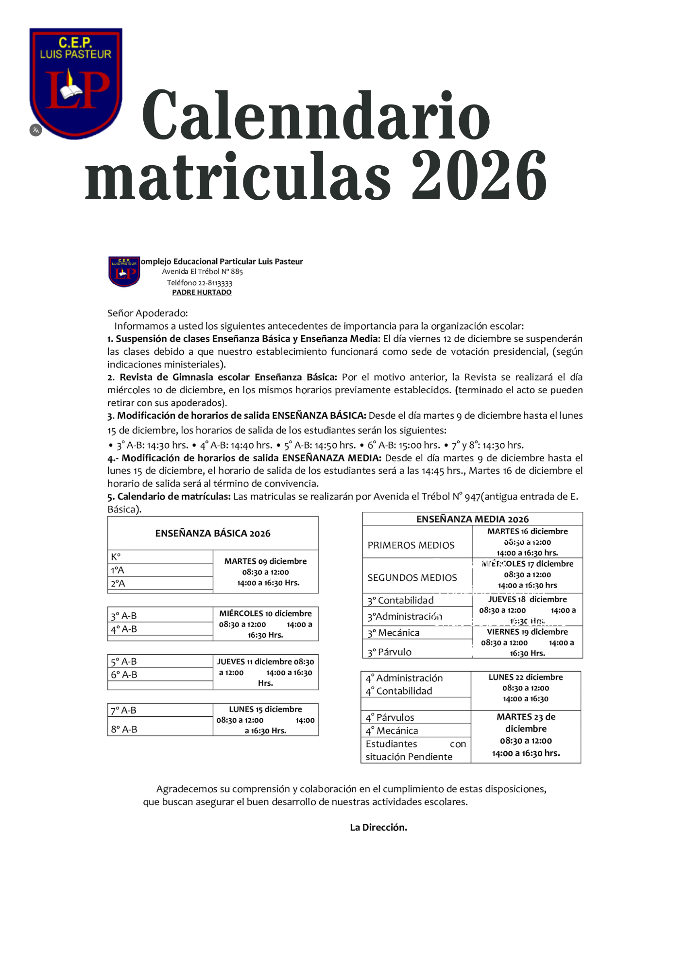 Calenndario matriculas 2026